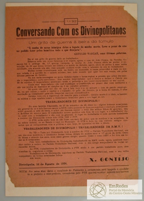 BOLETIM: CONVERSANDO COM OS DIVINOPOLITANOS DE PEDRO X. GONTIJO - ASSUNTO: UM GRITO DE GUERRA À BEIRA DO TÚMULO