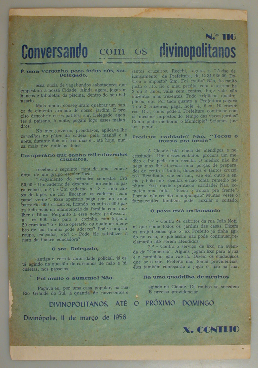 BOLETIM: CONVERSANDO COM OS DIVINOPOLITANOS DE PEDRO X. GONTIJO - ASSUNTO: É UMA VERGONHA PARA TODOS NÓS, SNR. DELEGADO.