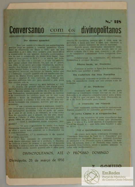 BOLETIM: CONVERSANDO COM OS DIVINOPOLITANOS DE PEDRO X. GONTIJO - ASSUNTO: DO NOSSO QUARTEL
