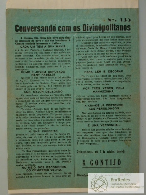 BOLETIM: CONVERSANDO COM OS DIVINOPOLITANOS DE PEDRO X. GONTIJO - ASSUNTO: A CÂMARA FÔRA ELEITA PELO PÔVO(SIC) PARA OLHAR OS INTERÊSSES(SIC) DO PÔVO(SIC) E NÃO DOS LOTEADORES. A CÂMARA CONTINUA INCOERENTE E TRAIDORA.
