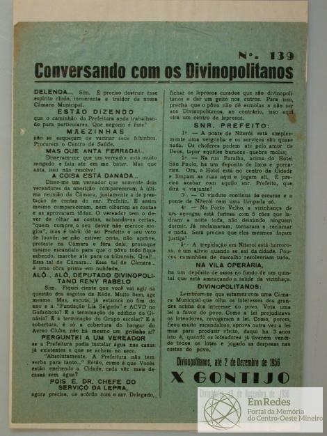 BOLETIM: CONVERSANDO COM OS DIVINOPOLITANOS DE PEDRO X. GONTIJO - ASSUNTO: DELENDA...SIM. É PRECISO DESTRUIR ÊSS(SIC) ESPÍRITO CHULO, INCOERENTE E TRAIDOR DE NOSSA CÃMARA MUNICIPAL.