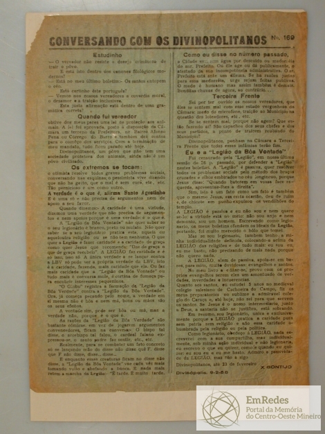 BOLETIM: CONVERSANDO COM OS DIVINOPOLITANOS DE PEDRO X. GONTIJO - ASSUNTOS: QUANDO FUI VEREADOR - TERCEIRA FRENTE - EU E A "LEGIÃO DA BÔA(SIC) VONTADE"