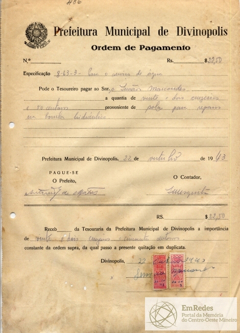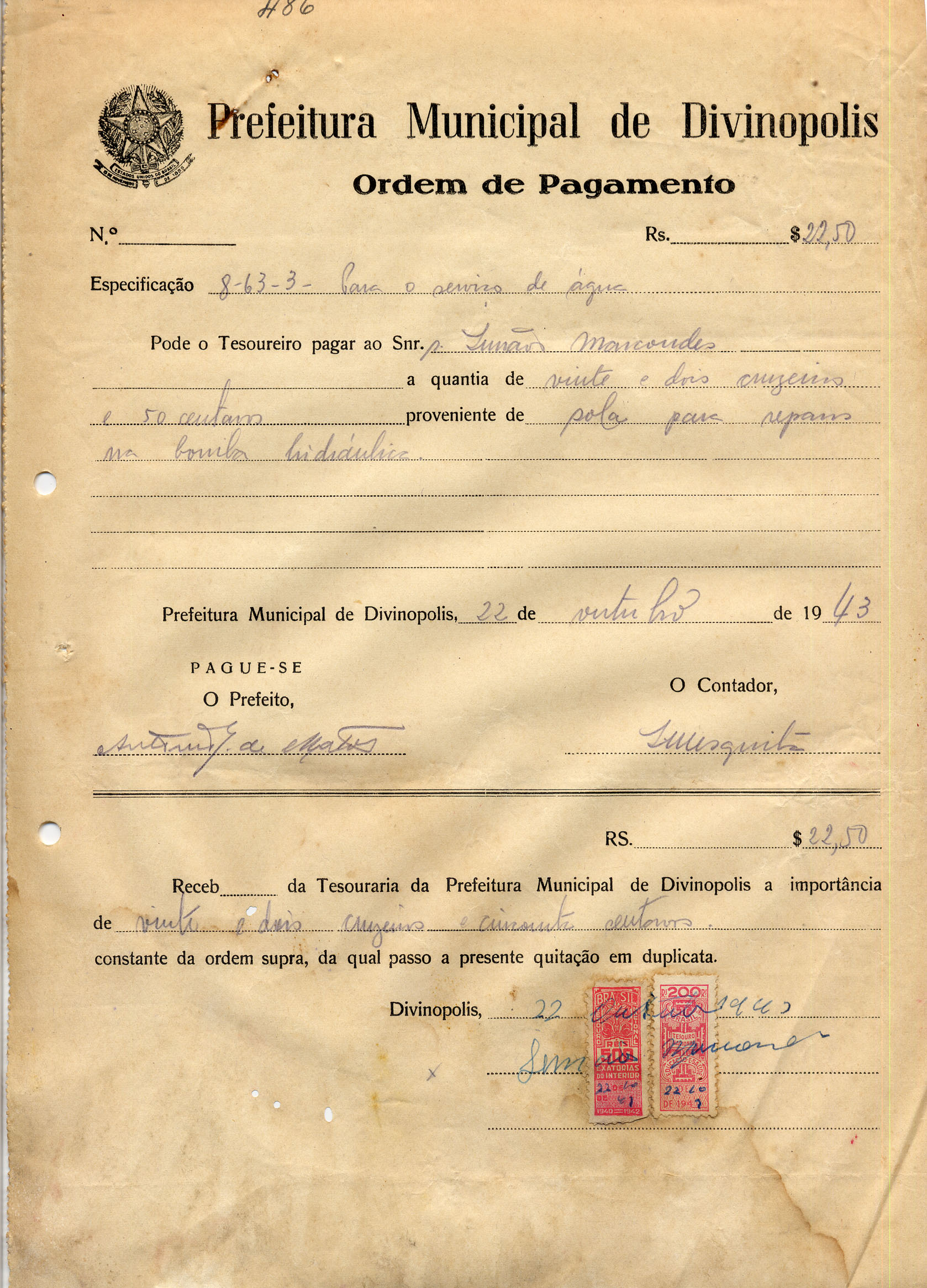PREFEITURA MUNICIPAL DE DIVINÓPOLIS, 22 DE OUTUBRO DE 1943
