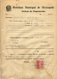 RECEB DA TESOURARIA DA PREFEITURA MUNICIPAL DE DIVINÓPOLIS A IMPORTÂNCIA DE VINTE E DOIS CRUZEIROS E CINCOENTA CENTAVOS CONSTANTE DA ORDEM SUPRA, DA QUAL PASSO A PRESENTE QUITAÇÃO EM DUPLICATA.