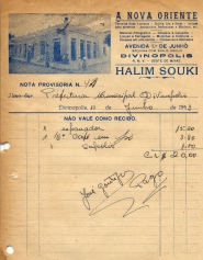 RECEB DA TESOURARIA DA PREFEITURA MUNICIPAL DE DIVINÓPOLIS A IMPORTÂNCIA DE VINTE CRUZEIROS CONSTANTE DA ORDEM SUPRA, DA QUAL PASSO A PRESENTE QUITAÇÃO EM DUPLICATA.