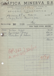 PODE O CHEFE DO SERVIÇO DE FAZENDA PAGAR AO SNR. GRÁFICA MINERVA S/A, A QUANTIA DE CR$ 500,00 (QUINHENTOS CRUZEIROS), PROVENIENTE DE NOTA DE MATERIAL DE EXPEDIENTE.