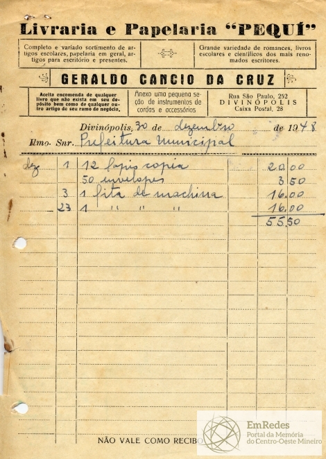 PREFEITURA MUNICIPAL DE DIVINÓPOLIS, 30 DE DEZEMBRO DE 1948