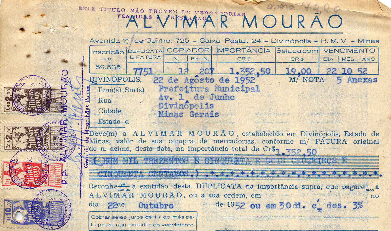 PREFEITURA MUNICIPAL DE DIVINÓPOLIS, 06 DE MAIO DE 1952
