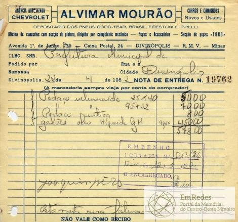 PREFEITURA MUNICIPAL DE DIVINÓPOLIS, 12 DE MAIO DE 1952