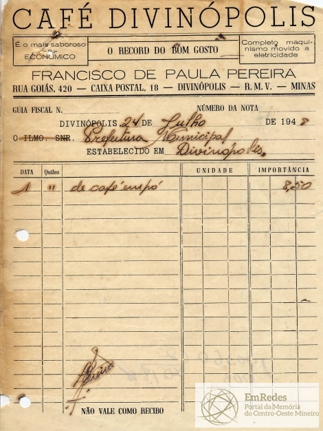 PREFEITURA MUNICIPAL DE DIVINÓPOLIS, 26 DE JULHO DE 1948