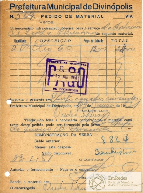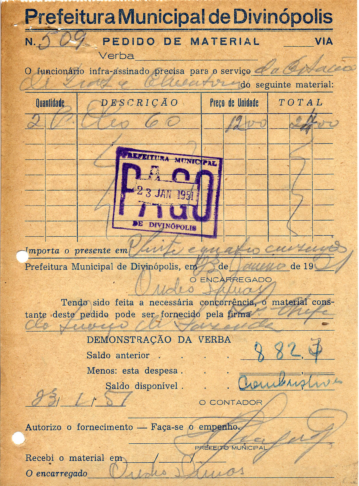 PREFEITURA MUNICIPAL DE DIVINÓPOLIS, 27 DE JANEIRO DE 1951