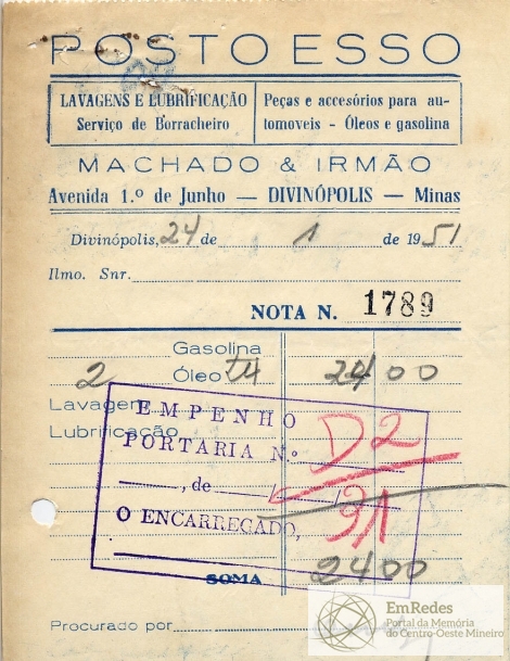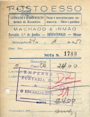 PODE O CHEFE DO SERVIÇO DE FAZENDA PAGAR AO SNR. MACHADO E IRMÃO, A QUANTIA DE CR$ 24,00 (VINTE QUATRO CRUZEIROS), PROVENIENTE DE 2 GALÕES DE ÓLEO.