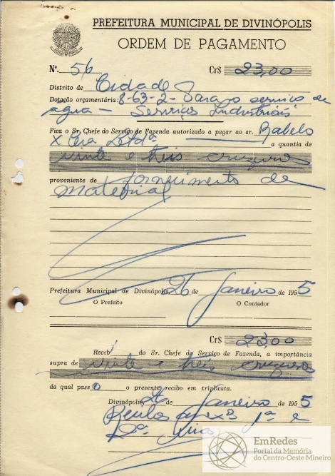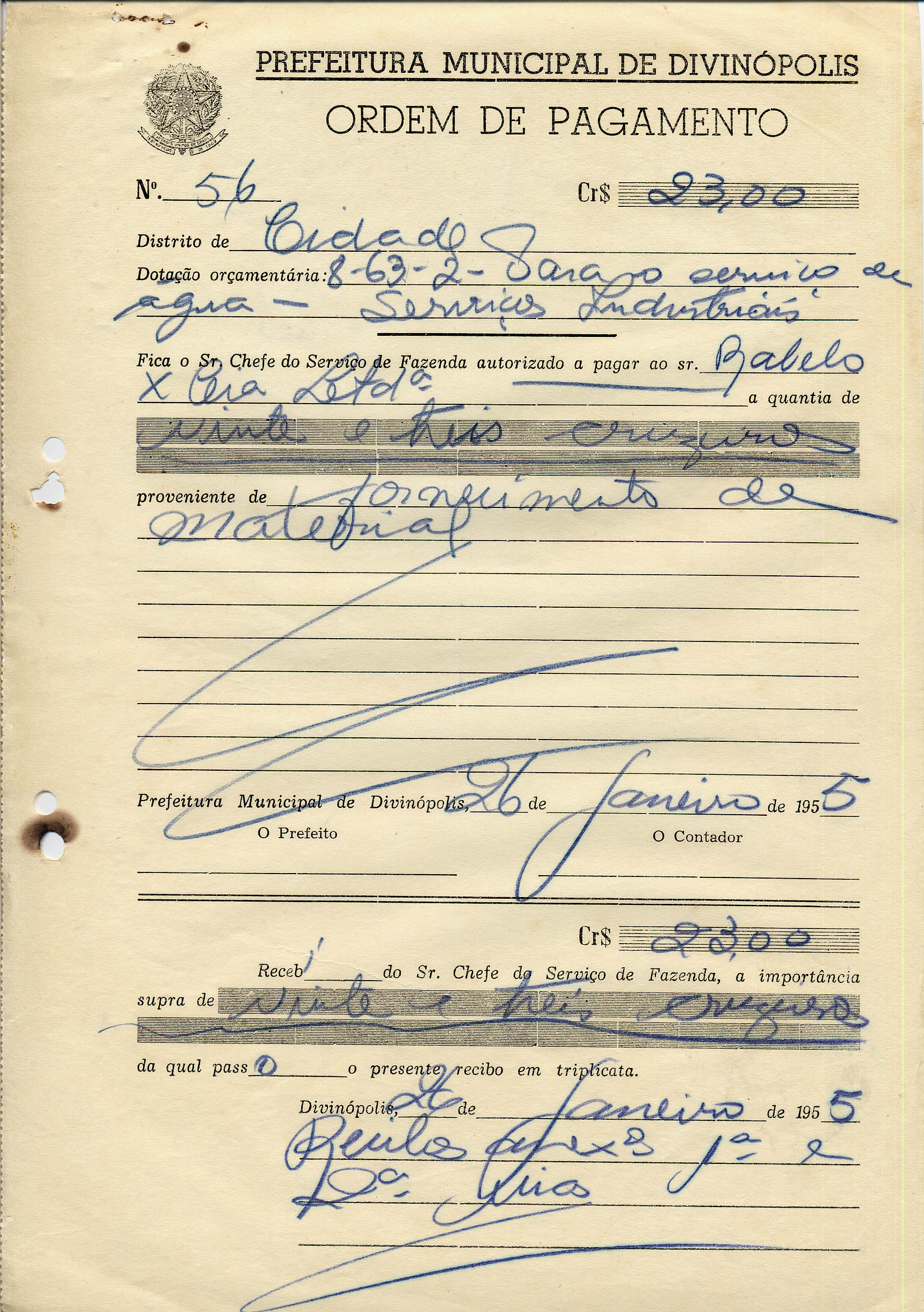 PREFEITURA MUNICIPAL DE DIVINÓPOLIS, 26 DE JANEIRO DE 1955