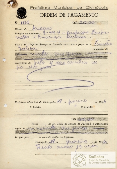 PREFEITURA MUNICIPAL DE DIVINÓPOLIS, 28 DE FEVEREIRO DE 1956