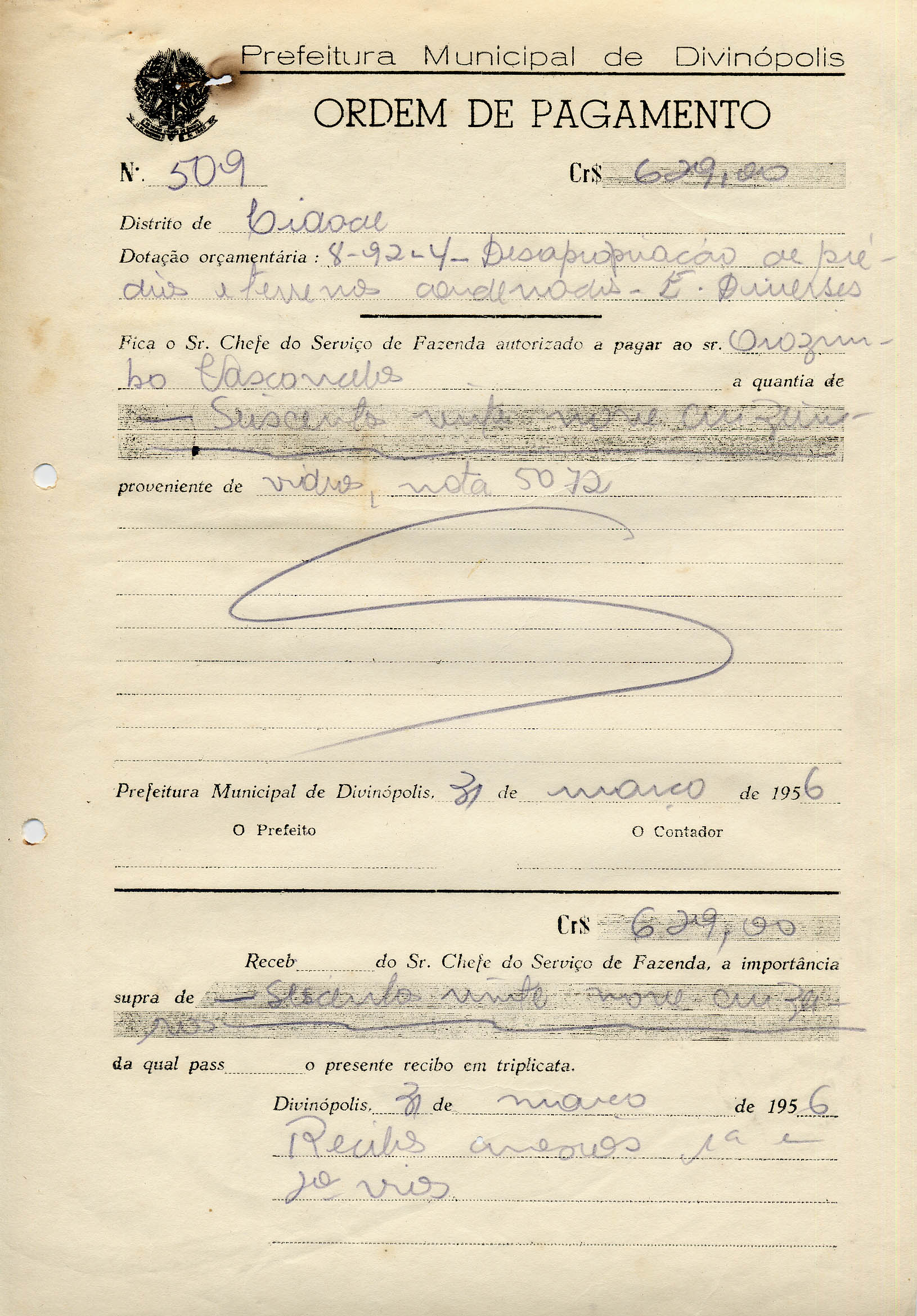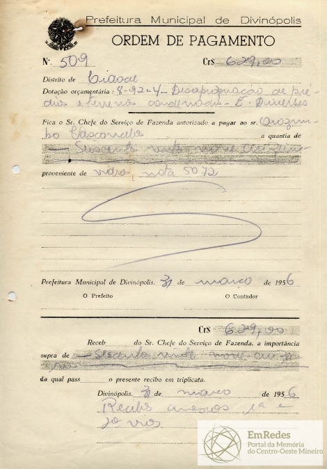 PREFEITURA MUNICIPAL DE DIVINÓPOLIS, 31 DE MARÇO DE 1956