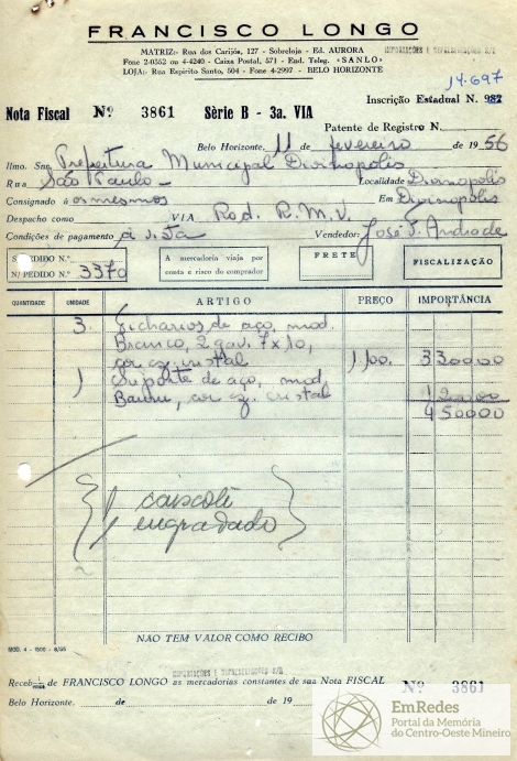 PREFEITURA MUNICIPAL DE DIVINÓPOLIS, 31 DE MARÇO DE 1956