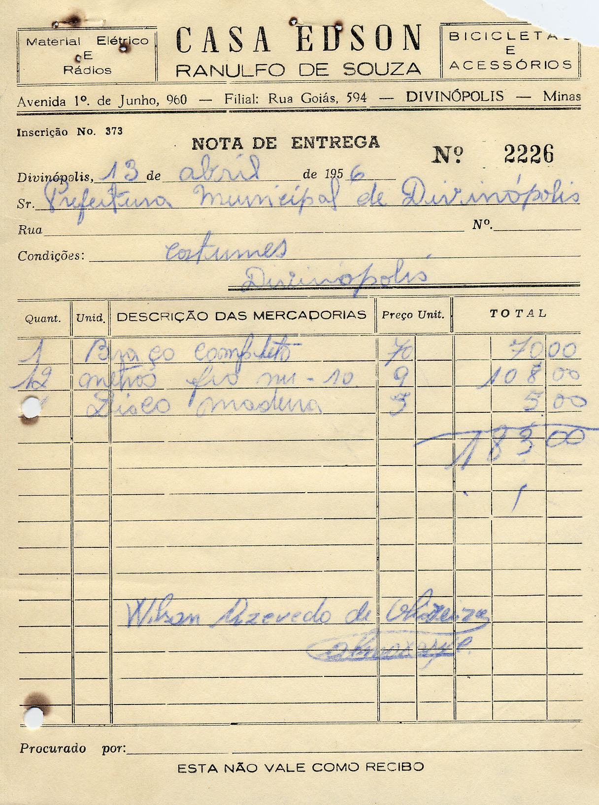 PREFEITURA MUNICIPAL DE DIVINÓPOLIS, 30 DE ABRIL DE 1956