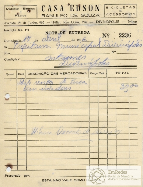 PREFEITURA MUNICIPAL DE DIVINÓPOLIS, 30 DE ABRIL DE 1956