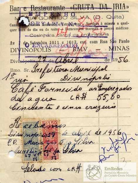 FICA O SR. CHEFE DO SERVIÇO DE FAZENDA AUTORIZADO A PAGAR AO SR. MARIA GONTIJO DA SILVA, A QUANTIA DE CINQUENTA E CINCO CRUZEIROS, PROVENIENTE DE CAFÉ FORNECIMENTO AO EMPREGADO DA BOMBA DÁGUA.