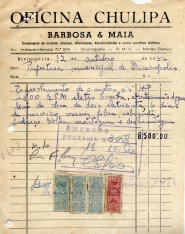 RECEBI DO SR. CHEFE DO SERVIÇO DE FAZENDA, A IMPORTÂNCIA SUPRA DE OITO MIL, QUINHENTOS CRUZEIROS DA QUAL PASSO O PRESENTE RECIBO EM TRIPLICATA.
