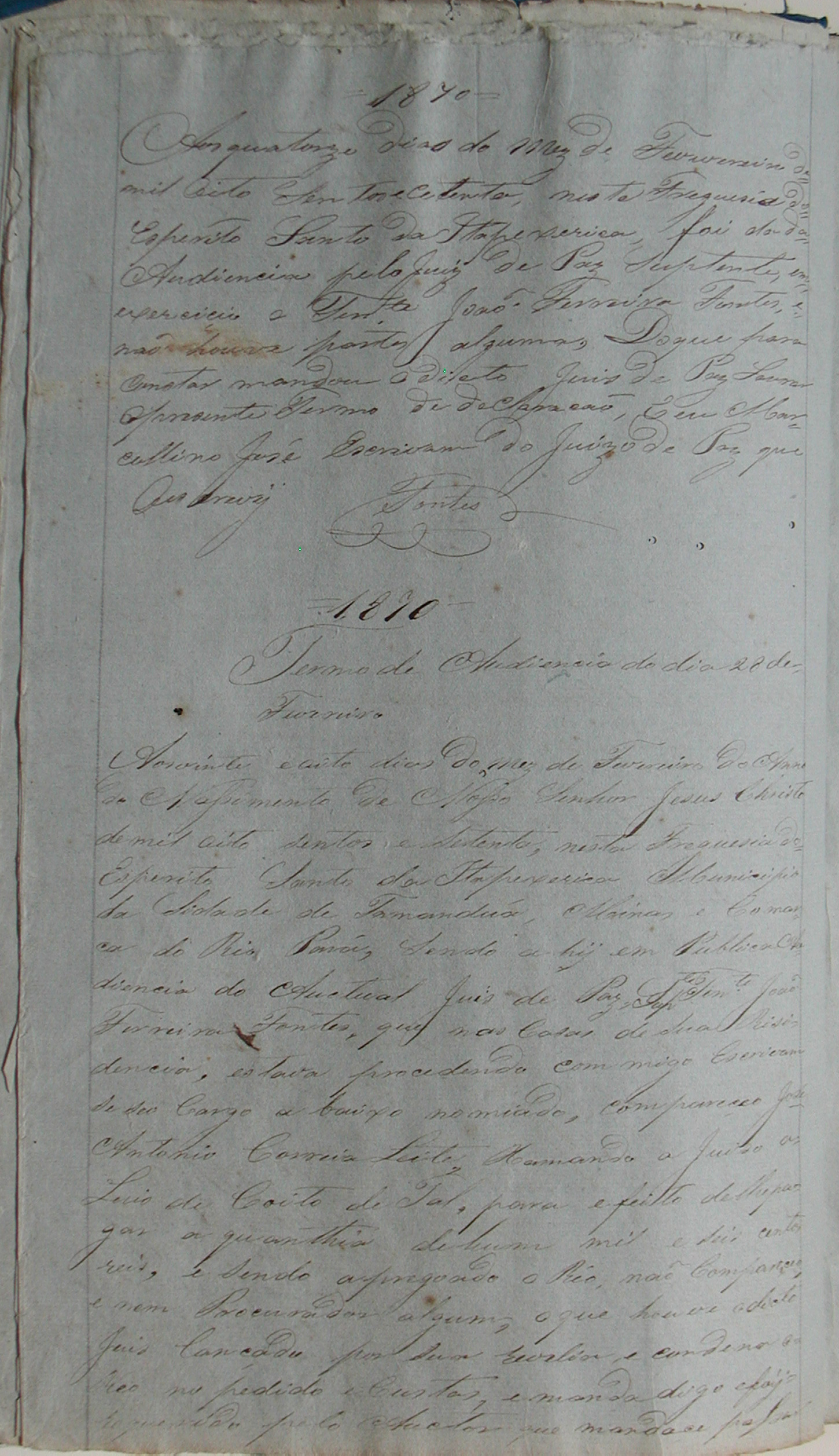 JUIZ DE PAZ SUPLENTE: TENENTE JOÃO FERREIRA FONTES.