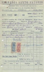 RECEBI DO SR. CHEFE DO SERVIÇO DE FAZENDA, A IMPORTÂNCIA SUPRA DE HUM MIL E CINQUENTA CRUZEIROS DA QUAL PASSO O PRESENTE RECIBO EM TRIPLICATA.