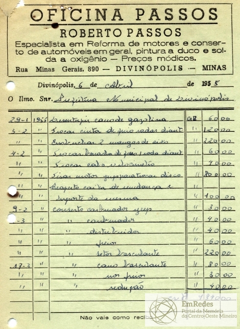 PREFEITURA MUNICIPAL DE DIVINÓPOLIS, 16 DE MAIO DE 1955