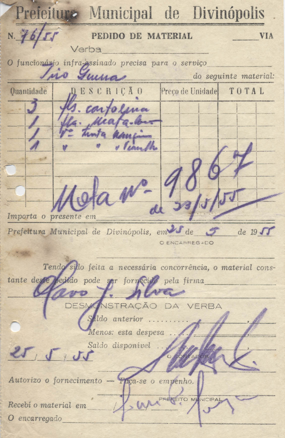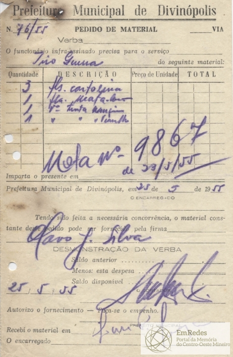 PREFEITURA MUNICIPAL DE DIVINÓPOLIS, 22 DE NOVEMBRO DE 1955