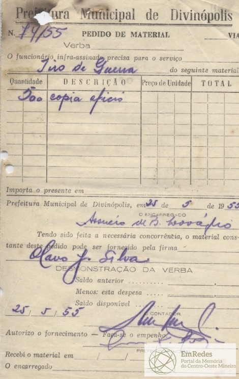 PREFEITURA MUNICIPAL DE DIVINÓPOLIS, 22 DE NOVEMBRO DE 1955