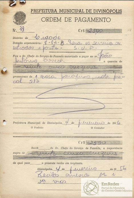 PREFEITURA MUNICIPAL DE DIVINÓPOLIS, 04 DE FEVEREIRO DE 1956