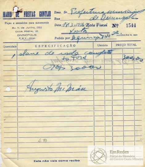 PREFEITURA MUNICIPAL DE DIVINÓPOLIS, 23 DE MAIO DE 1956