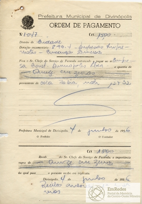 PREFEITURA MUNICIPAL DE DIVINÓPOLIS, 04 DE JUNHO DE 1956