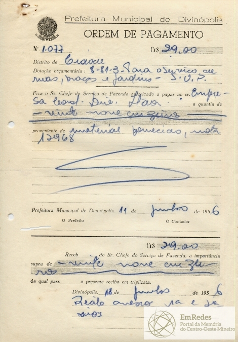 PREFEITURA MUNICIPAL DE DIVINÓPOLIS, 11 DE JUNHO DE 1956