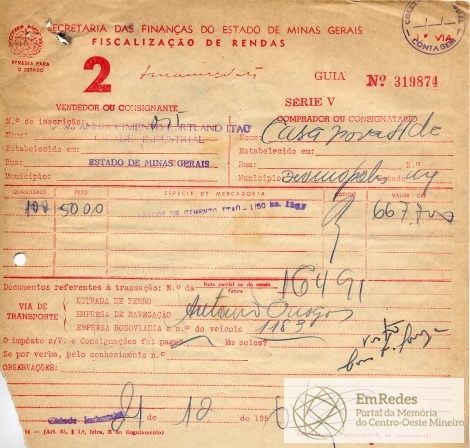 PREFEITURA MUNICIPAL DE DIVINÓPOLIS - ORDEM DE PAGAMENTO Nº 3.561 CR$ 6.677,00 DISTRITO DE CIDADE DOTAÇÃO ORÇAMENTÁRIA 8-82-3 PARA O SERVIÇO DE ESTRADAS E PONTES FICA O SR. CHEFE DO SERVIÇO DE FAZENDA AUTORIZADO A PAGAR AO SR. CIA CIMENTO PORTLAND ITAÚ, A QUANTIA DE SEIS MIL SEISCENTOS SETENTA SETE CRUZEIROS PROVENIENTE DE 100 SACOS CIMENTO NOTA 16491. PREFEITURA MUNICIPAL DE DIVINÓPOLIS, 29 DE DEZEMBRO DE 1956 CR$ 6.677,00 RECEBI DO SR. CHEFE DO SERVIÇO DE FAZENDA, A IMPORTÂNCIA SUPRA DE SEIS MIL SEISCENTOS SETENTA E SETE CRUZEIROS DA QUAL PASSO O PRESENTE RECIBO EM TRIPLICATA. DIVINÓPOLIS, 29 DE DEZEMBRO DE 1956