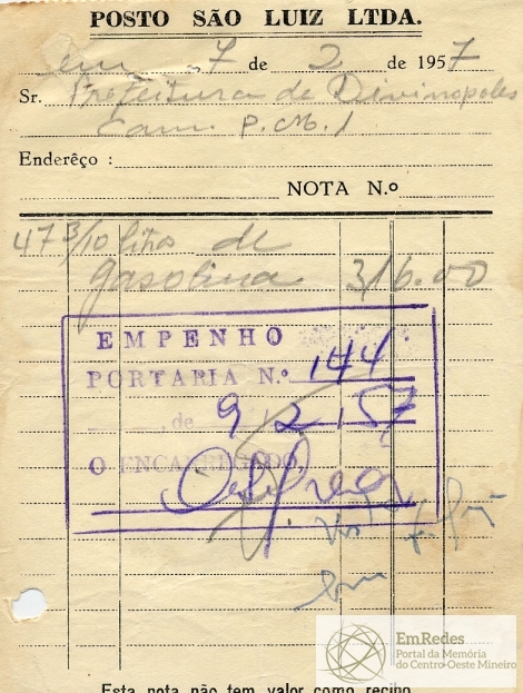 FICA O SR. CHEFE DO SERVIÇO DE FAZENDA AUTORIZADO A PAGAR AO SR. POSTO SÃO LUIZ LTDA, A QUANTIA DE TREZENTOS E DEZESEIS CRUZEIROS PROVENIENTE DE GASOLINA.
