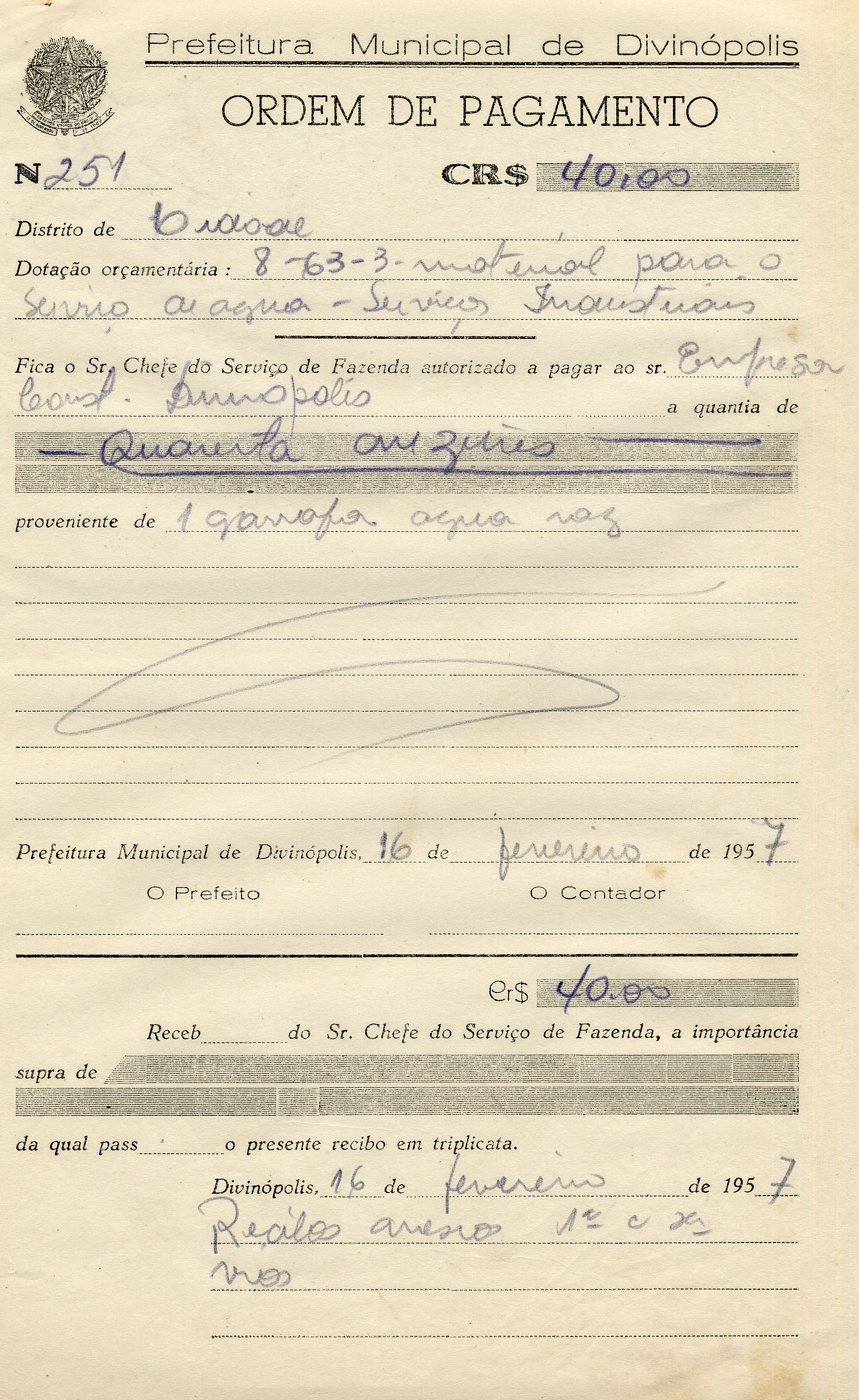 PREFEITURA MUNICIPAL DE DIVINÓPOLIS, 16 DE FEVEREIRO DE 1957