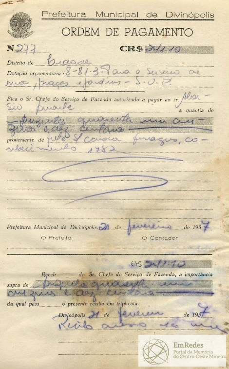PREFEITURA MUNICIPAL DE DIVINÓPOLIS, 21 DE FEVEREIRO DE 1957