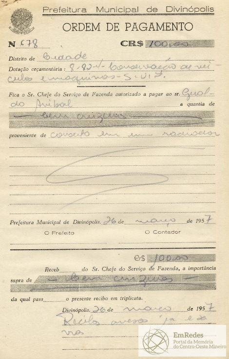 PREFEITURA MUNICIPAL DE DIVINÓPOLIS, 26 DE MARÇO DE 1957