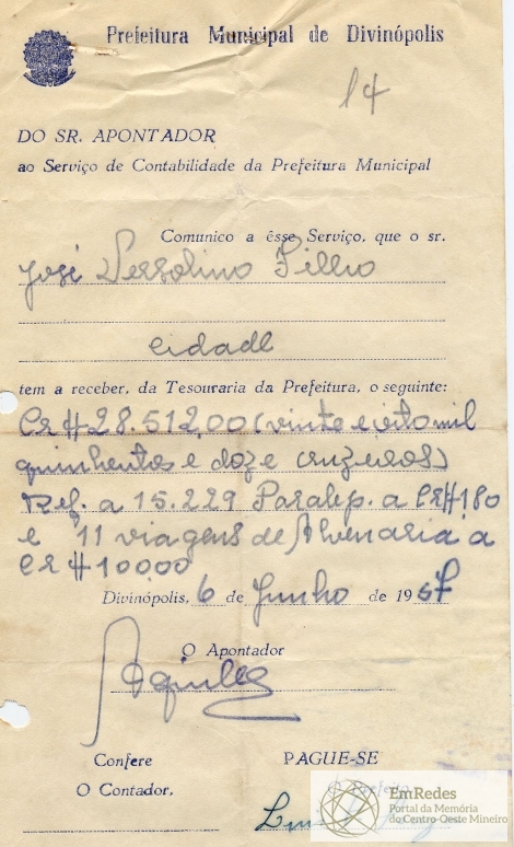 PREFEITURA MUNICIPAL DE DIVINÓPOLIS, 07 DE JUNHO DE 1957