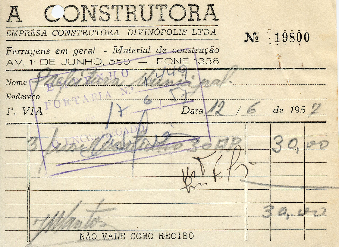 PREFEITURA MUNICIPAL DE DIVINÓPOLIS, 17 DE JUNHO DE 1957