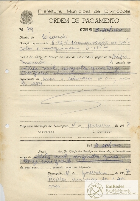PREFEITURA MUNICIPAL DE DIVINÓPOLIS, 04 DE FEVEREIRO DE 1957.