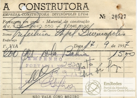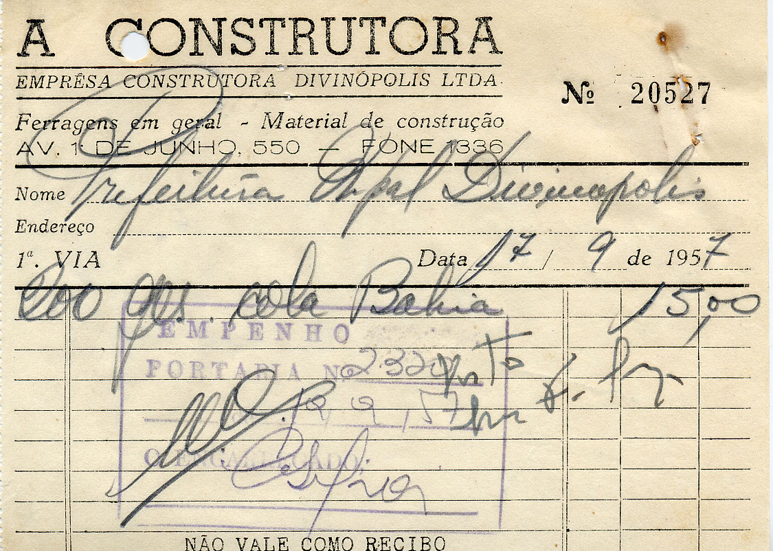 PREFEITURA MUNICIPAL DE DIVINÓPOLIS, 19 DE SETEMBRO DE 1957