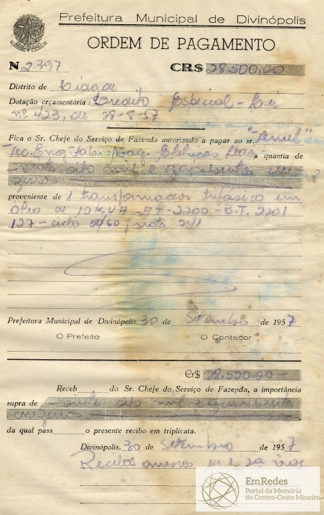 PREFEITURA MUNICIPAL DE DIVINÓPOLIS, 30 DE SETEMBRO DE 1957