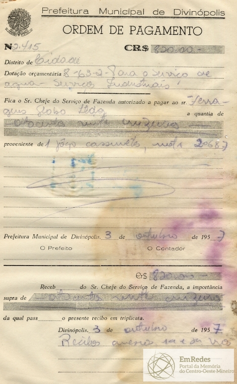 PREFEITURA MUNICIPAL DE DIVINÓPOLIS, 03 DE OUTUBRO DE 1957