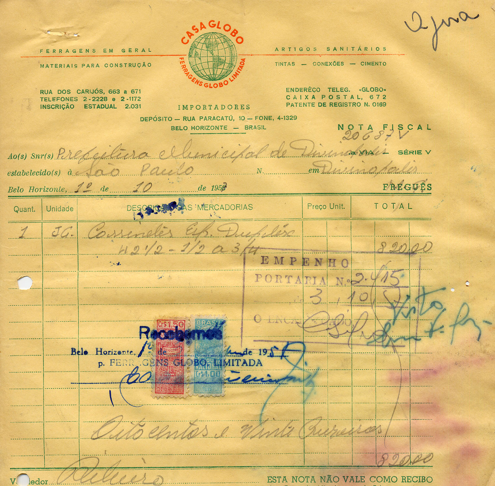 PREFEITURA MUNICIPAL DE DIVINÓPOLIS, 03 DE OUTUBRO DE 1957