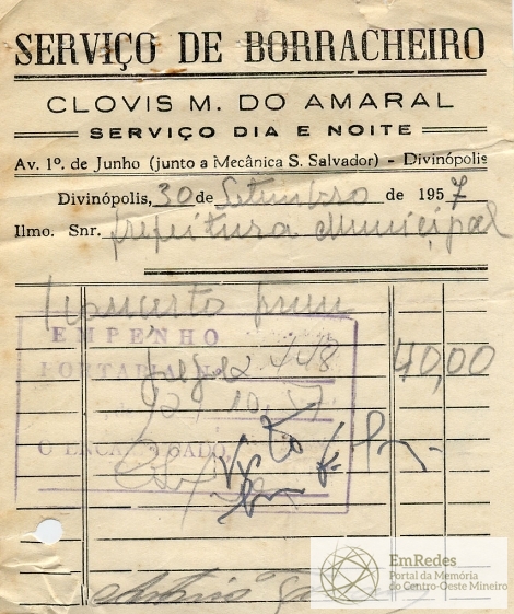 PREFEITURA MUNICIPAL DE DIVINÓPOLIS, 12 DE OUTUBRO DE 1957