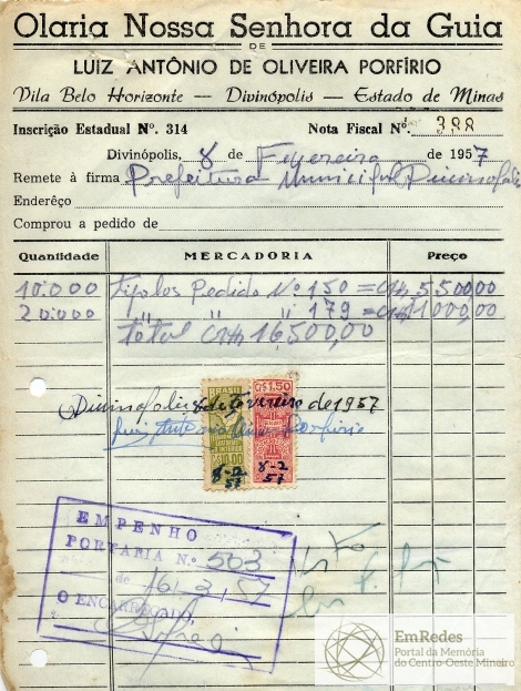 PREFEITURA MUNICIPAL DE DIVINÓPOLIS, 16 DE MARÇO DE 1957
