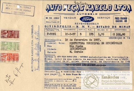 PREFEITURA MUNICIPAL DE DIVINÓPOLIS, 20 DE MARÇO DE 1957