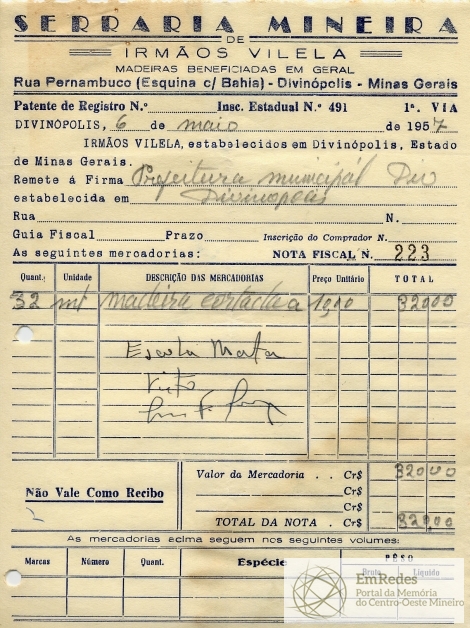 PREFEITURA MUNICIPAL DE DIVINÓPOLIS, 14 DE MAIO DE 1957