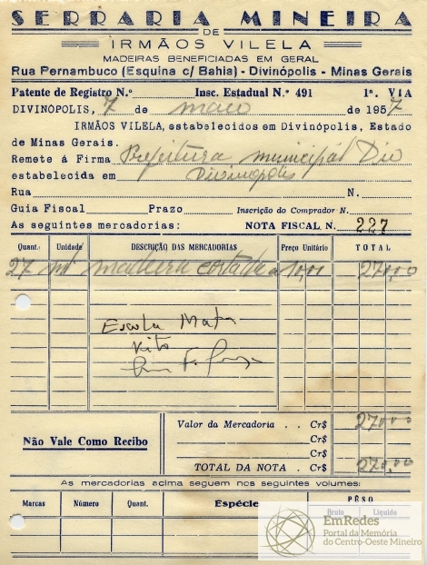 FICA O SR. CHEFE DO SERVIÇO DE FAZENDA AUTORIZADO A PAGAR AO SR.IRMÃOS VILELA A QUANTIA DE DOIS MIL, QUINHENTOS DEZOITO CRUZEIROS PROVENIENTE DE MADEIRA FORNECIDA